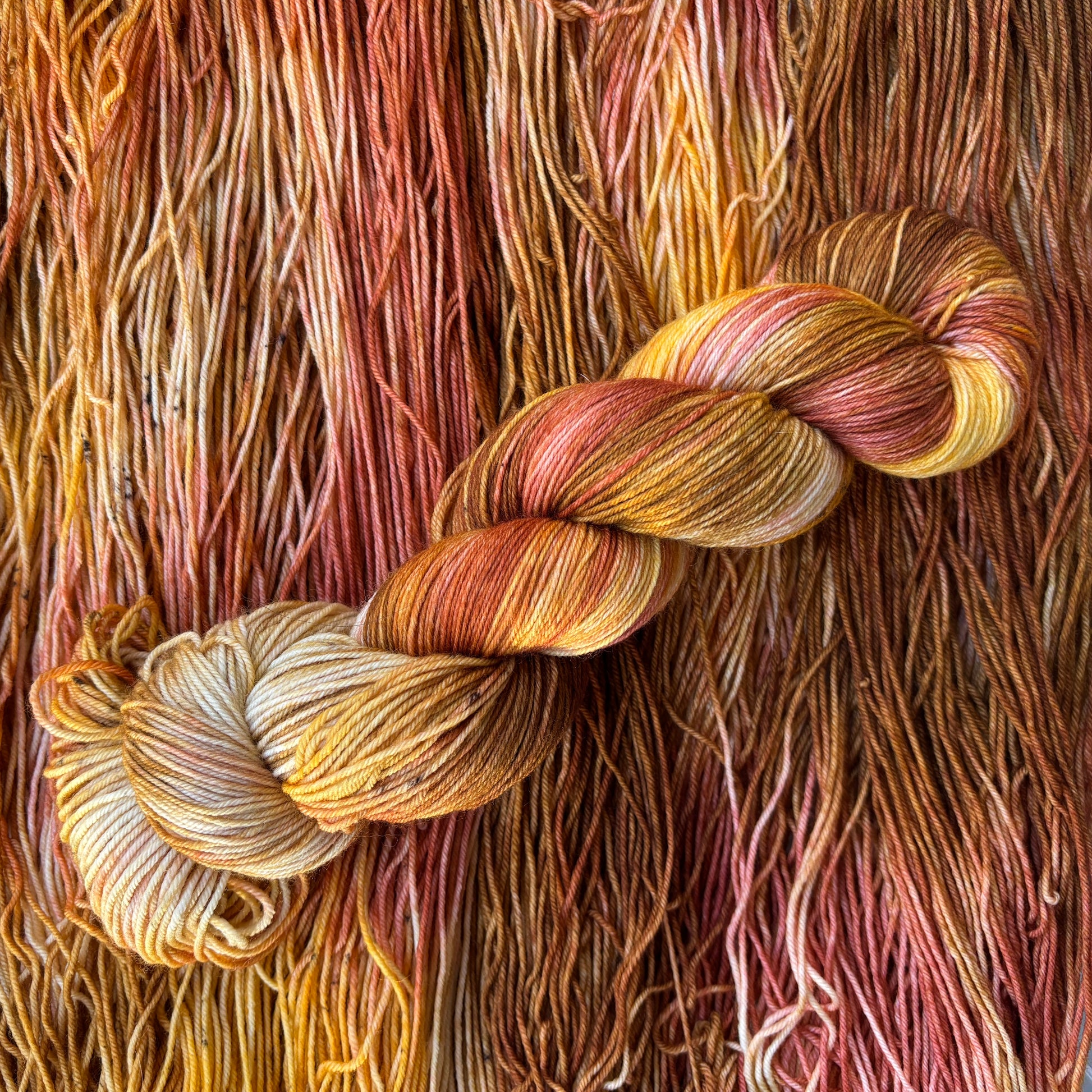 The most gorgeous variegated yarn in the colors of bright autumn leaves.