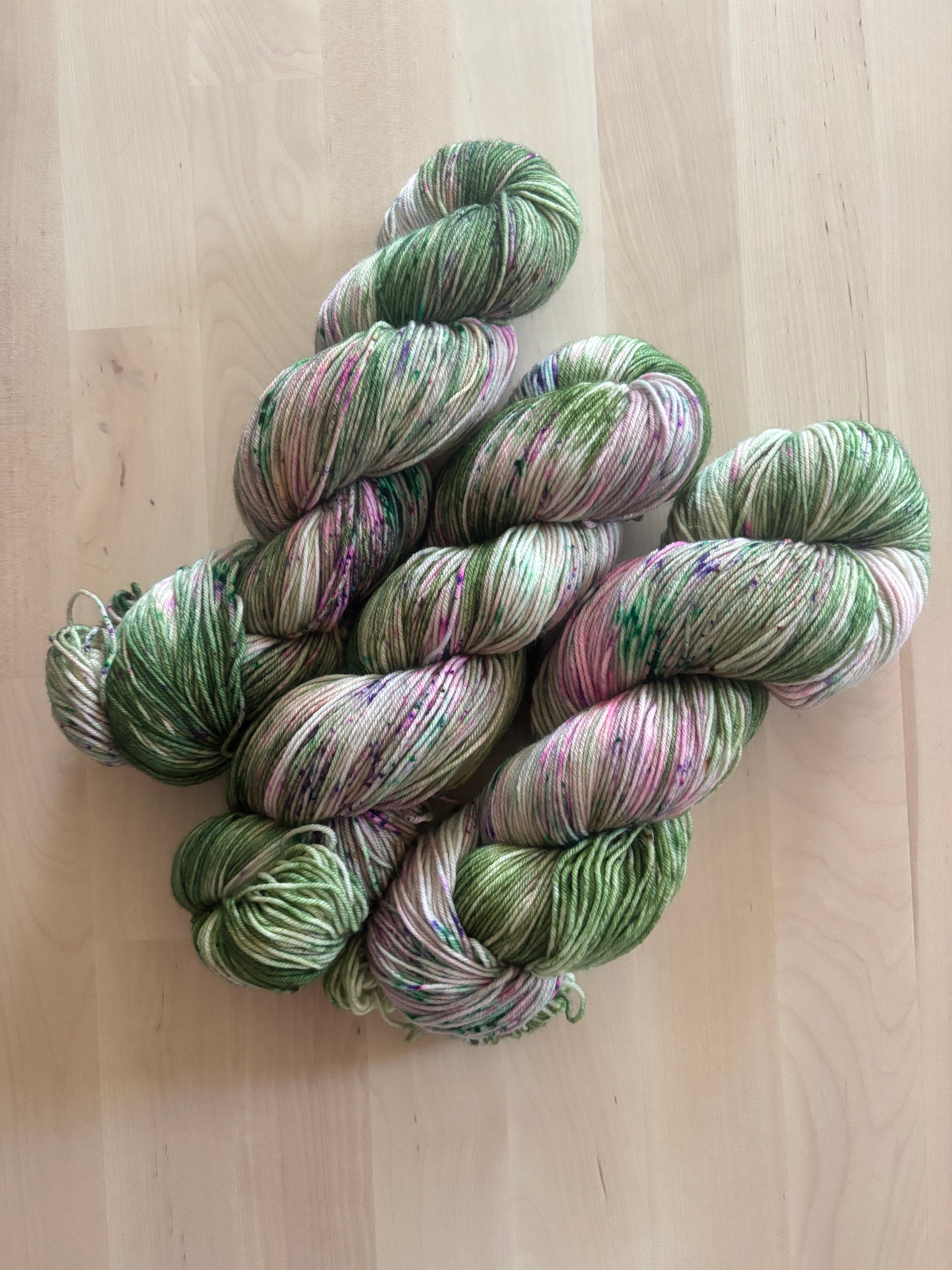 A beautiful variegated yarn on our For Sure Fingering base. This yarn is almost exactly like Don't Cry, Shopgirl, but it has some different speckles!