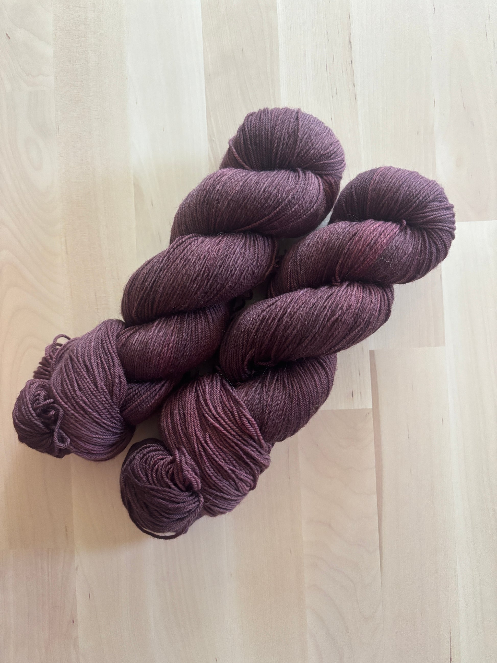 A deep maroon tonal yarn on our For Sure Fingering base. This yarn is very similar to Be a Pepper, but has a bit more variation in the tonality.